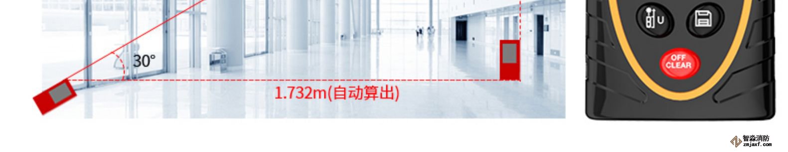 激光測距儀量程不小于50m;精度:3mm測量距離、面積、空間、體積