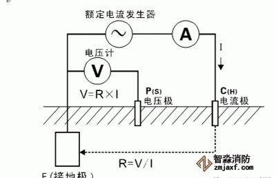 條件:必須有兩個接地棒:一個輔助地和一個探測電極。各個接地電極間的間隔5至10米。原理是在輔助地和被測地之間加上電流,測量被測地和探測電極間的電壓降,測量結果包括測量電纜本身的電阻。