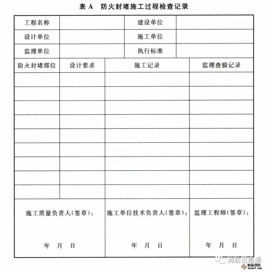附錄A 防火封堵施工過程檢查記錄