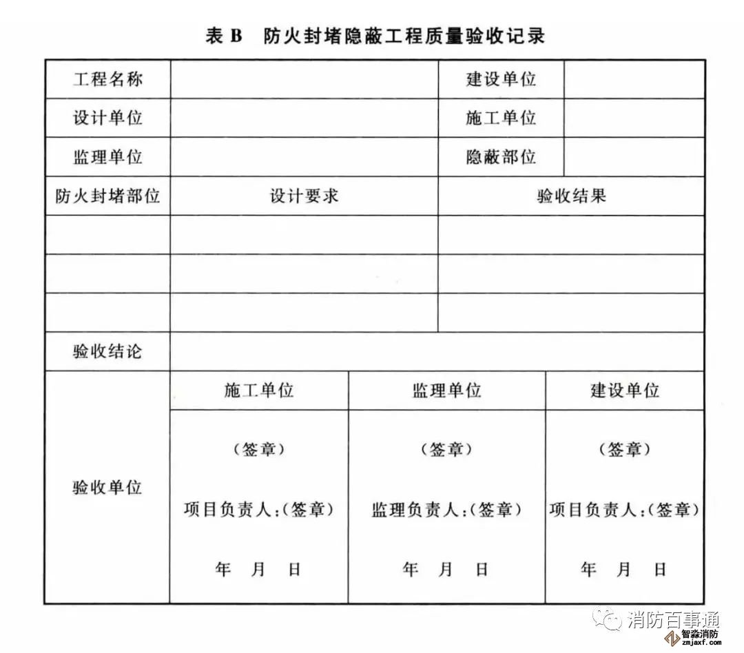 附錄B 防火封堵隱蔽工程質(zhì)量驗收記錄