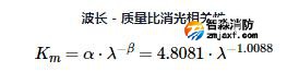 分析了明火(化學計量和過渡通風)的數據,并發現了波長之間的相關性λnm(nm)和Km是(等式3)