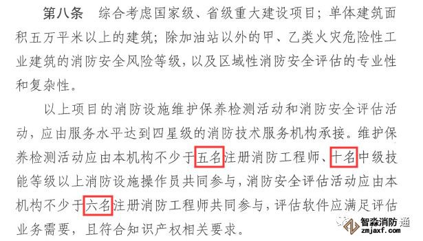 第八條 本規(guī)定單獨對四星級機構做了明確規(guī)定,對于注冊消防工程師和中級技能人員要求遠超過應急管理部印發(fā)的從業(yè)條件(2名注冊消防工程師),然而四星級所對應的建設項目是最賺錢的,也是各個機構最想要承接的業(yè)務,不是四星級沒有精鋼鉆,攬不到瓷器活!這條,對于注冊消防工程師和中級技能人員就給了最大的利好!