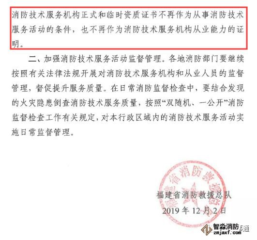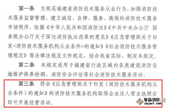 從福建省消防救援總隊的這則通知不難發(fā)現(xiàn),福建省此次出臺的規(guī)定積極響應了應急管理部在2019.8.29印發(fā)的關于《消防技術服務機構從業(yè)條件》文件,福建省動作之快,效率之高,點個贊!當然結(jié)合消防行業(yè)的實際情況,文件不出臺,沒有明確的工作準則,消防從業(yè)者和消防服務機構真的是太難了!