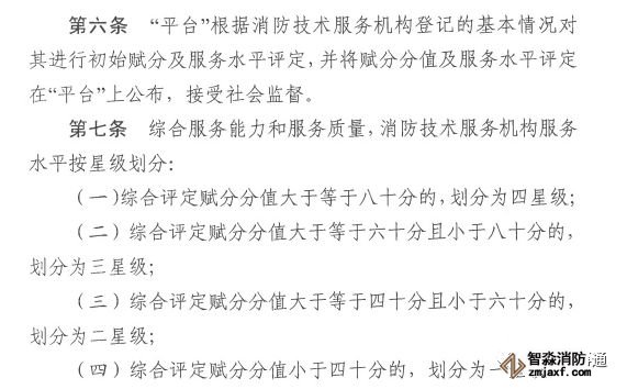 第六條 評分是由消防救援機構進行的,根據(jù)從業(yè)機構的條件,如果你想星級高,只有加強配套,對所有從業(yè)機構而言,弱肉強食是必然的結(jié)果。
