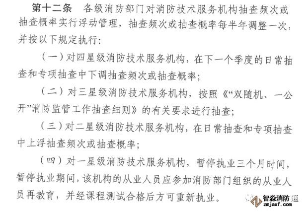 第四條 本條規(guī)定是整個規(guī)定最大的亮點和創(chuàng)新,為何采用星級標準?為了解決目前消防管理最大的難題:一管就死,不管就亂!通過星級和后面要解讀的扣分制度,給了管理部門和從業(yè)機構靈活管理的余地。