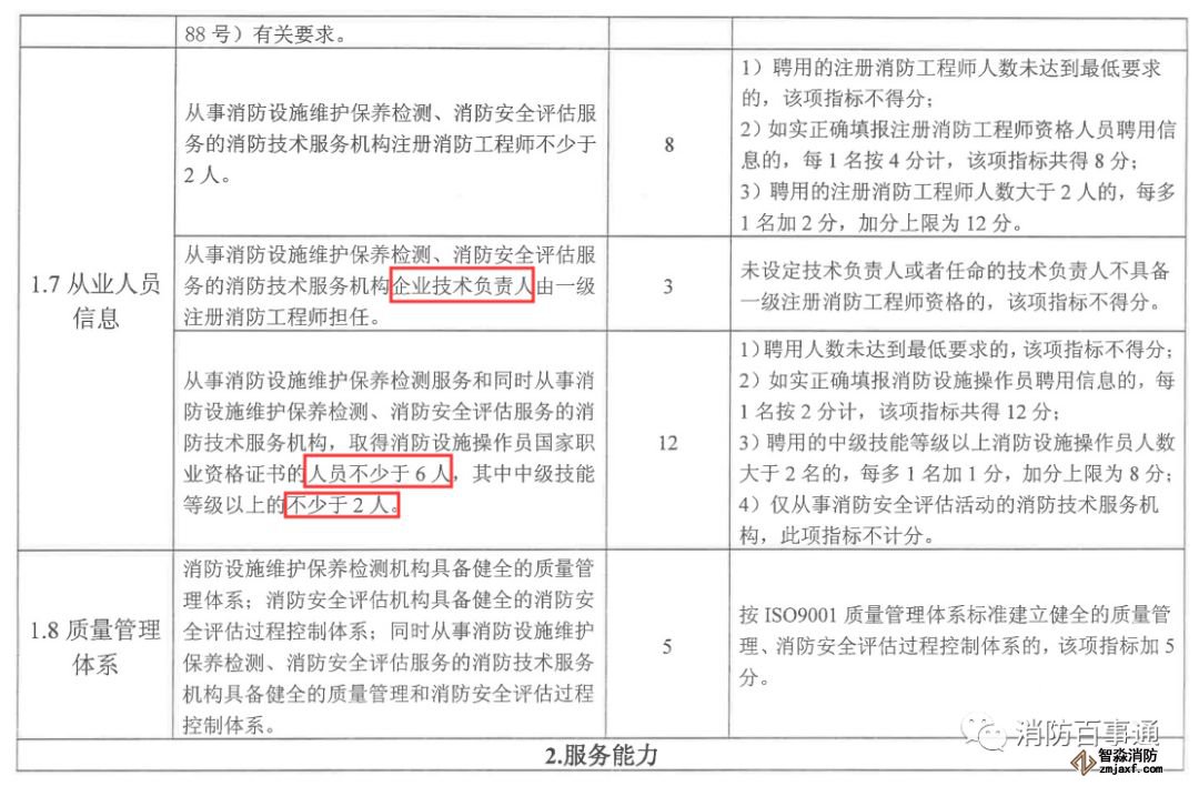 1.此處2人與應急管理部在2019.8.29印發(fā)的關于《消防技術服務機構從業(yè)條件》文件(其中提到消防技術服務機構從業(yè),注冊消防工程師不少于2名)呼應;
