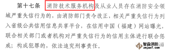 第十七條 消防從業(yè)人員違法成本加大,把人的違法問題解決了,很大程度上就解決了消防服務的問題。