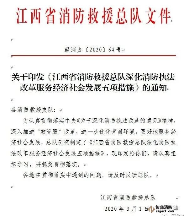 為認(rèn)真貫徹落實(shí)中央《關(guān)于深化消防執(zhí)法改革的意見(jiàn)》精神,深入推進(jìn)“放管服”改革,進(jìn)一步優(yōu)化營(yíng)商環(huán)境,更好地服務(wù)經(jīng)濟(jì)社會(huì)發(fā)展,總隊(duì)結(jié)合工作實(shí)際,在全省推出深化消防執(zhí)法改革服務(wù)經(jīng)濟(jì)社會(huì)發(fā)展五項(xiàng)措施:
