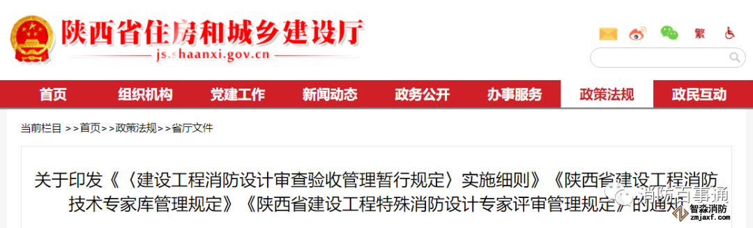 陜西實施住建部第51號令,印發了《〈建設工程消防設計審查驗收管理暫行規定〉實施細則》、《陜西省建設工程消防技術專家庫管理規定》、《陜西省建設工程特殊消防設計專家評審管理規定》三份文件。