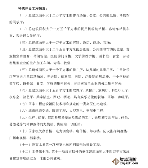 (四)總建筑面積大于二千五百平方米的影劇院,公共圖書館的閱覽室,營業性室內健身、休閑場館,醫院的門診樓,大學的教學樓、圖書館、食堂,勞動密集型企業的生產加工車間,寺廟、教堂;