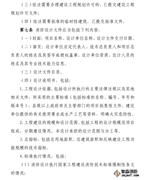 (一)按照建設工程法律法規和國家工程建設消防技術標準進行設計,編制符合要求的消防設計文件,不得違反國家工程建設消防技術標準強制性條文;