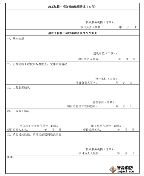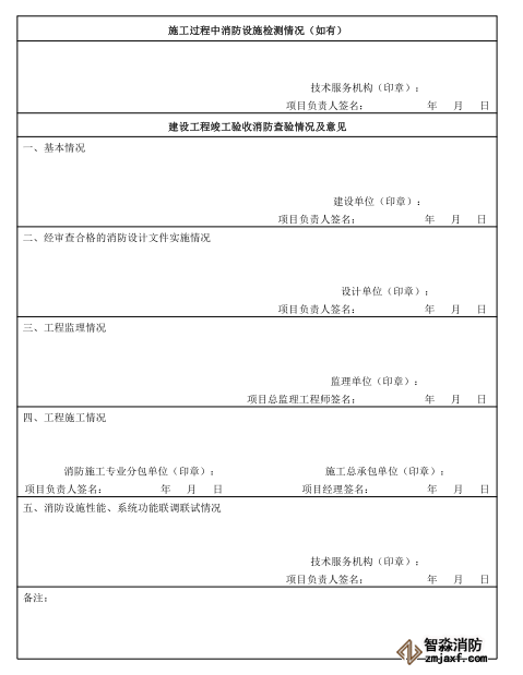 (三)建設單位對工程涉及消防的各分部分項工程驗收合格;施工、設計、工程監理、技術服務等單位確認工程消防質量符合有關標準;