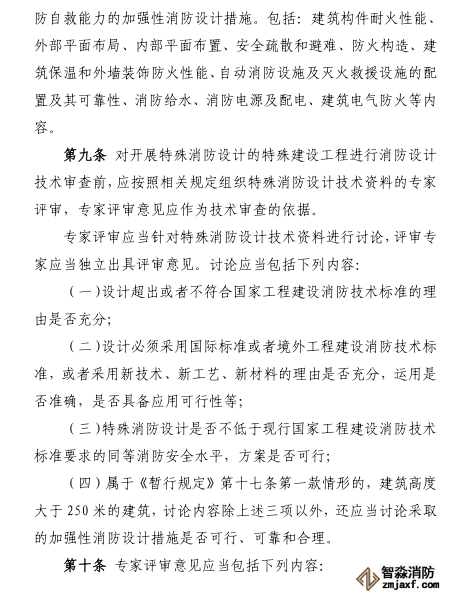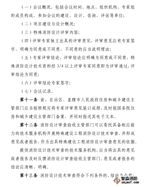 評審專家應當符合相關專業要求,總數不得少于七人,且獨立出具評審意見。特殊消防設計技術資料經四分之三以上評審專家同意即為評審通過,評審專家有不同意見的,應當注明。省、自治區、直轄市人民政府住房和城鄉建設主管部門應當將專家評審意見,書面通知報請評審的消防設計審查驗收主管部門,同時報國務院住房和城鄉建設主管部門備案。