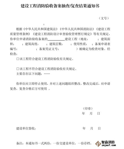 第三十七條 建設單位收到檢查不合格整改通知后,應當停止使用建設工程,并組織整改,整改完成后,向消防設計審查驗收主管部門申請復查。