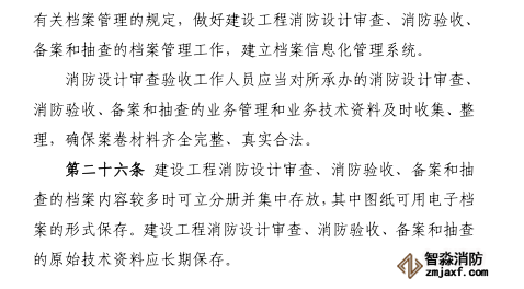 (二)有完整的工程消防技術檔案和施工管理資料(含涉及消防的建筑材料、建筑構配件和設備的進場試驗報告);