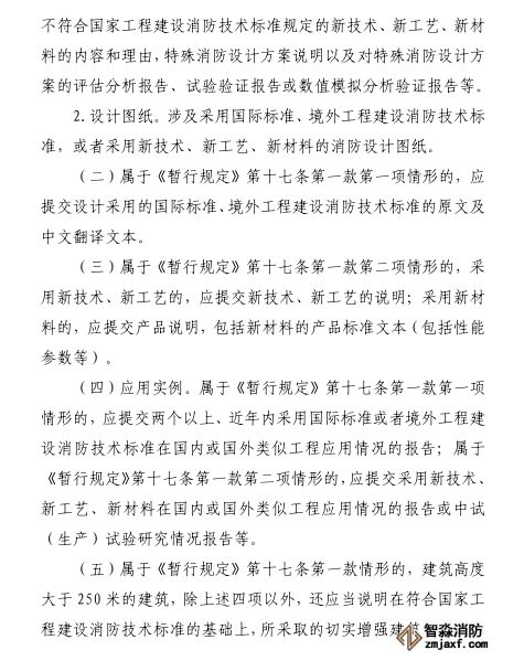 (二)消防設計文件擬采用的新技術、新工藝、新材料不符合國家工程建設消防技術標準規定的。