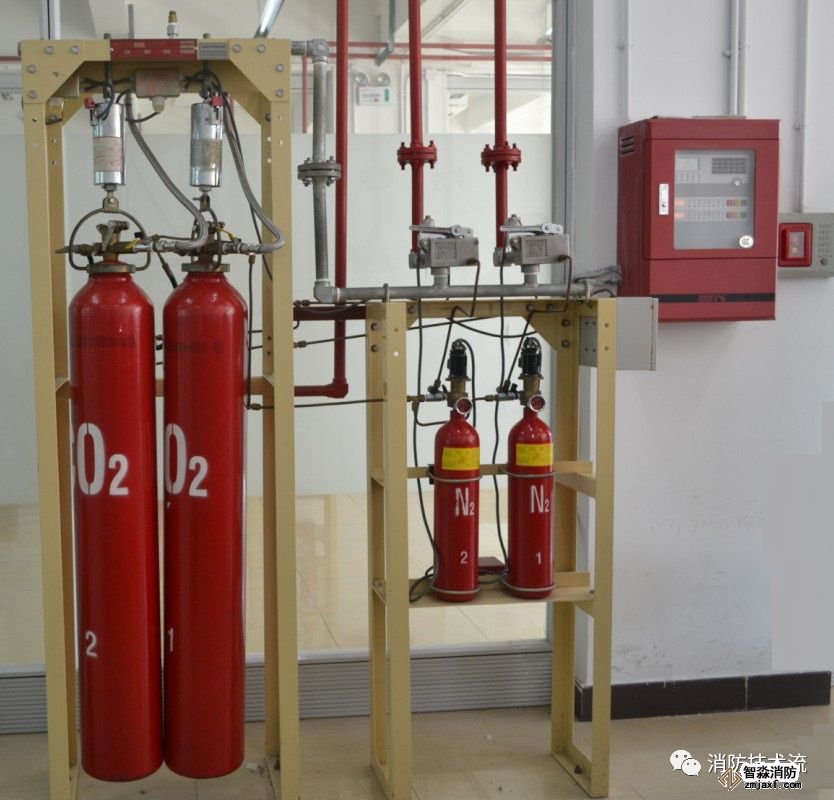 混合氣體IG-541滅火劑,是一種既不支持燃燒又不與絕大部分物質(zhì)發(fā)生反應(yīng)的氣體,其本身來源豐富,可從空氣中制取。它是以物理方式進行滅火的,即通過減少火災(zāi)燃燒區(qū)域空氣中的氧含量而達到滅火效果。