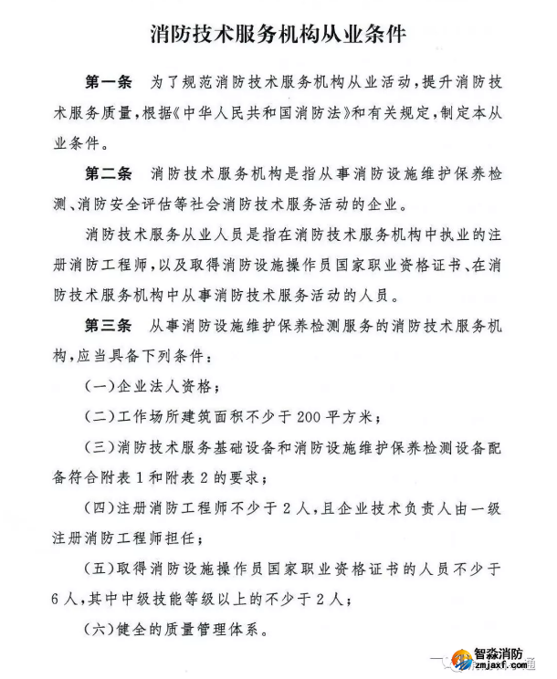 消防技術服務機構從業條件